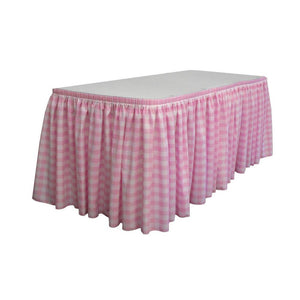 14 Ft. x 29 in. White and Pink Accordion Pleat Checkered Polyester Table Skirt